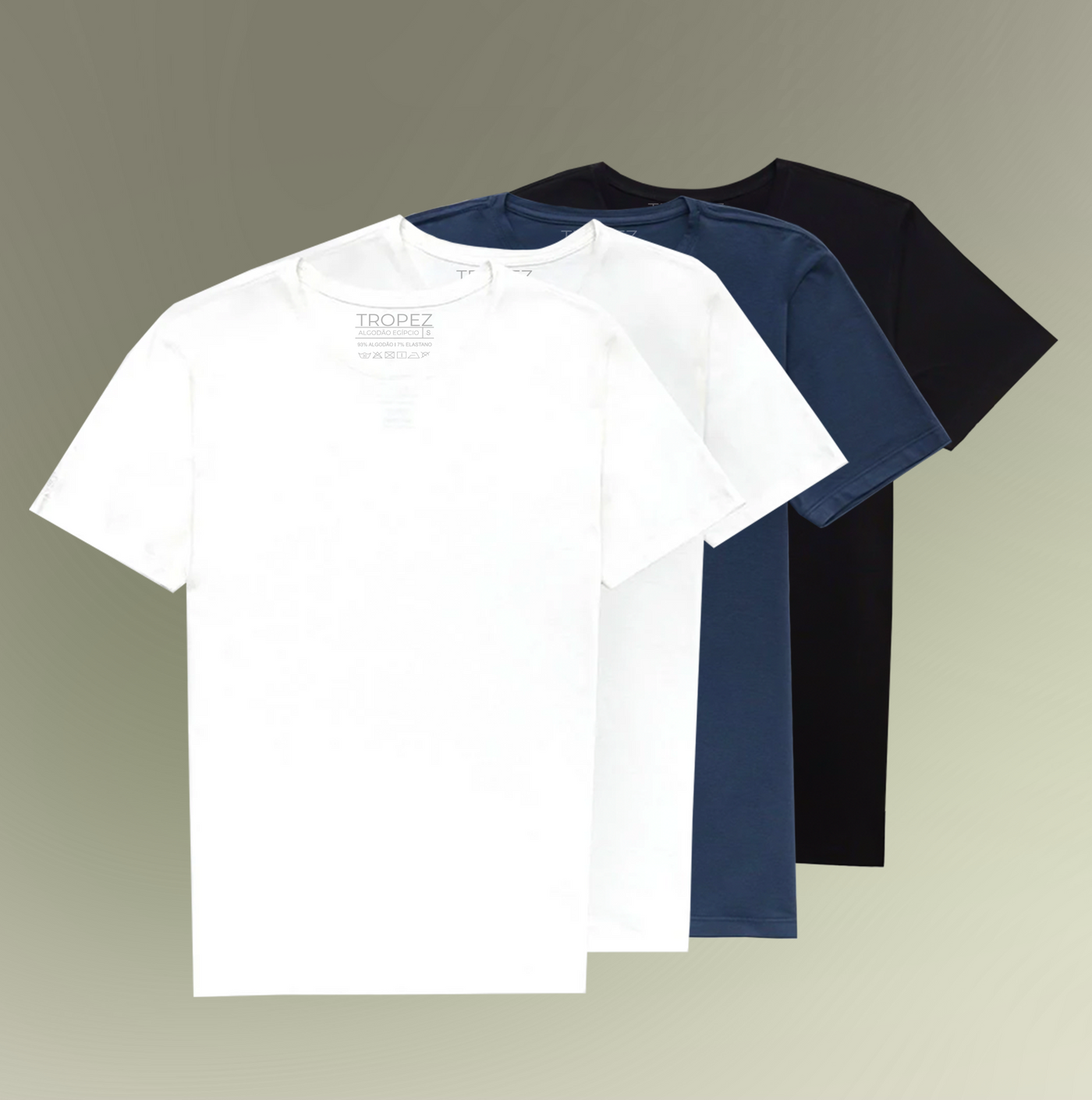 A camiseta da Tropez sai da lavagem pronta para usar, sem necessidade de passar. Além disso, mantém-se impecável ao longo do dia, sem amassar, diferente das camisetas comuns de algodão, que acumulam vincos e exigem manutenção constante.