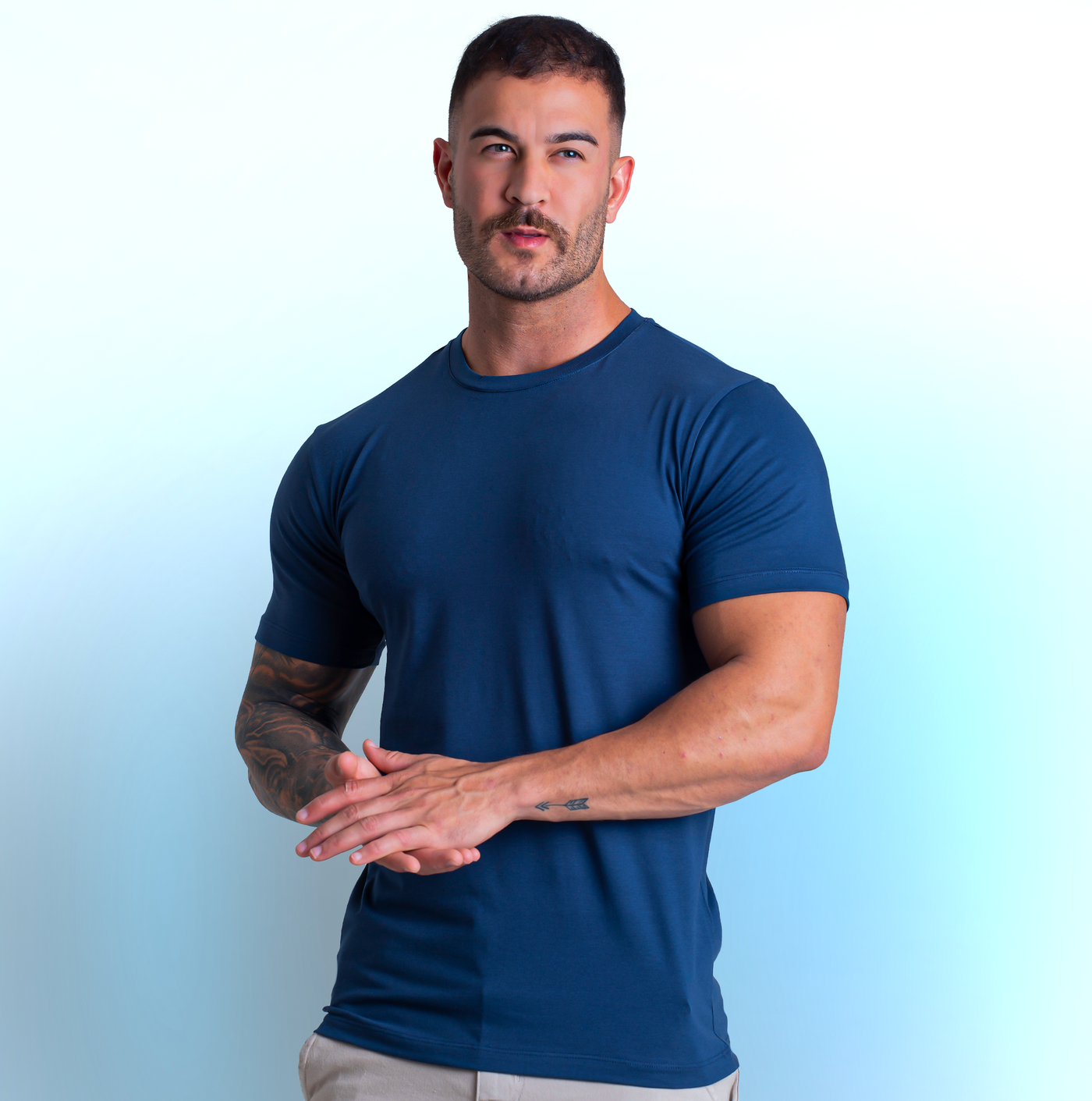 O tecido de algodão egípcio é muito mais eficiente que o algodão comum em reduzir a proliferação das bactérias do suor, responsáveis pelo mau cheiro. Por isso, você pode usar a Camiseta Tropez o dia inteiro, em qualquer ocasião, sem nunca mais se preocupar com odores indesejados.